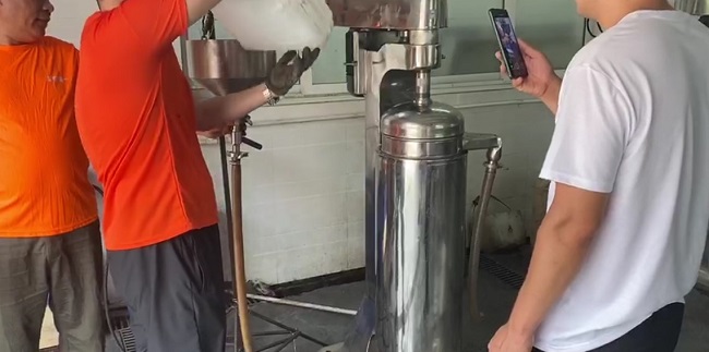 為(wei)迎合市(shi)場需求,越來越多的(de)(de)食(shi)品生(sheng)(sheng)產(chan)領域會對食(shi)品的(de)(de)澄清度有(you)一定的(de)(de)要求,拿浙江這家食(shi)品廠生(sheng)(sheng)產(chan)的(de)(de)雞(ji)湯(tang)舉例來說,該廠對于(yu)物料(liao)的(de)(de)分離需求主要就(jiu)是將(jiang)雞(ji)湯(tang)中(zhong)的(de)(de)渣質(zhi)過(guo)濾掉,以便后續的(de)(de)加工應用,根據(ju)物料(liao)實際情(qing)況我們發現,雞(ji)湯(tang)中(zhong)所含渣質(zhi)顆粒較為(wei)細小(xiao),因此我么(me)選擇了管式離心機做澄清分離實驗檢驗雞(ji)湯(tang)的(de)(de)分離效(xiao)果。