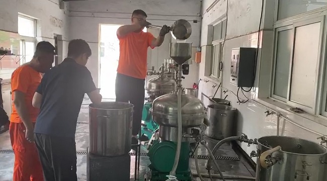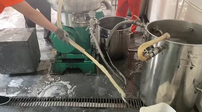 不難看出該物(wu)料經離(li)心(xin)機(ji)分(fen)離(li)后明顯的澄(cheng)清度。像這種全(quan)自動離(li)心(xin)機(ji)(碟片分(fen)離(li)機(ji))的使用,相信大多數生(sheng)物(wu)企業早(zao)已不陌生(sheng),而這種離(li)心(xin)機(ji)設(she)備之所(suo)以能夠被廣(guang)泛應用,說明它在生(sheng)產過程中(zhong)的確起到了關鍵作用,如果說植物(wu)提取有段位,那這種離(li)心(xin)機(ji)的使用,就是提升其段位的關鍵“法寶(bao)”之一(yi),其利(li)用不(bu)同物質在(zai)(zai)離心(xin)(xin)力(li)場中不(bu)同的(de)離心(xin)(xin)速(su)度(du),將混合物中不(bu)同成分分離,以實現物質的(de)提取、分離和濃縮(suo)等(deng)目(mu)的(de),省人力(li)物力(li)的(de)能力(li)也自然(ran)不(bu)在(zai)(zai)話下。