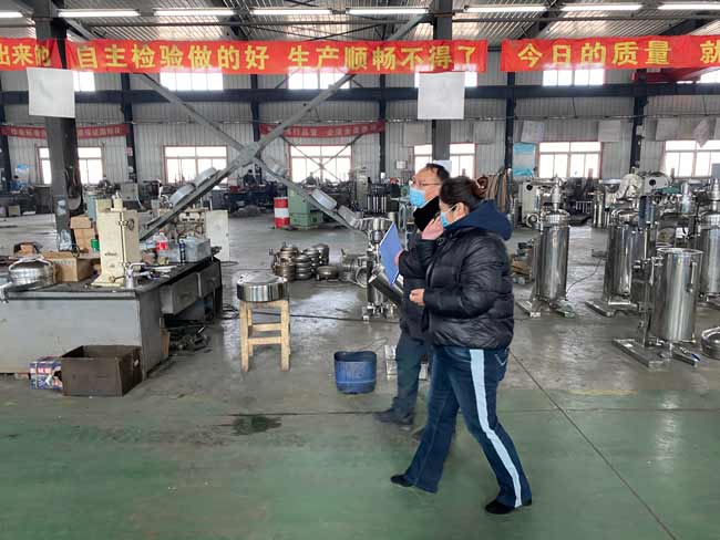 在此防控疫情(qing)關鍵期(qi),遼(liao)寧富一離心機(ji)迎來(lai)遼(liao)陽(yang)市太(tai)子河區(qu)政(zheng)府(fu)監察部門關于就疫情(qing)期(qi)間企業安全(quan)生產的工作檢(jian)查及指(zhi)導(dao)。總經理熱情(qing)接待并與(yu)政(zheng)府(fu)領導(dao)就當前生產的方方面面做了(le)詳細的匯報(bao)工作。