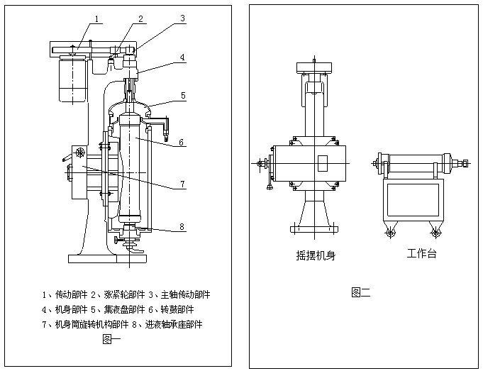 部(bu)件(見圖(tu)四),集液盤部(bu)件(見圖(tu)一),轉鼓部件(見圖五),進液軸承座部件(見圖六)組成。